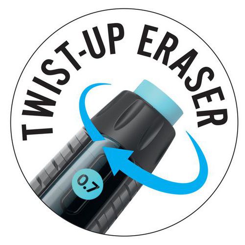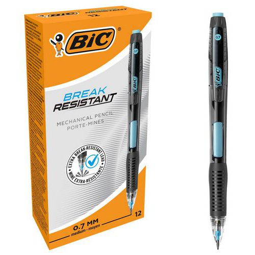 Portaminas recargable Break Resistant de alta resistencia, provisto de una mina cuya fórmula permite resistir a la rotura para durar más tiempo. Cuenta con una mina impregnada de nanodiamantes resistente y un mecanismo de absorción de impactos que evita la rotura de las minas. Cada portaminas Break Resistant incluye una mina ultrarresistente y una goma de borrar retráctil grande que resulta cómoda de corregir. Utilice el pulsador lateral y la zona de sujeción para disfrutar de una experiencia de escritura cómoda e ininterrumpida. Este portaminas BIC Break Resistant ofrece la combinación ideal de innovación y diseño, para escribir y dibujar con comodidad.