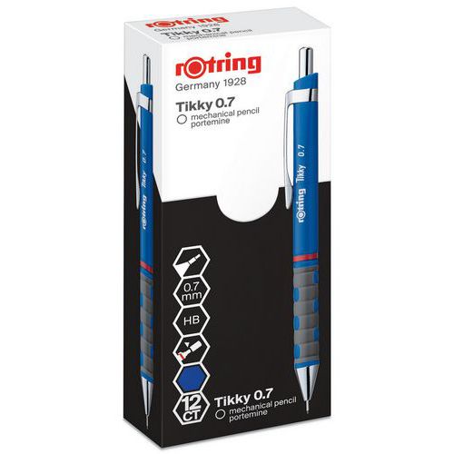| Nombre del producto | Portaminas Tikky HB de 0,7 mm, Cuerpo color: Azul, Punta Ø: 0.7 mm, Goma incorporada: sí, Sin COV: sí |