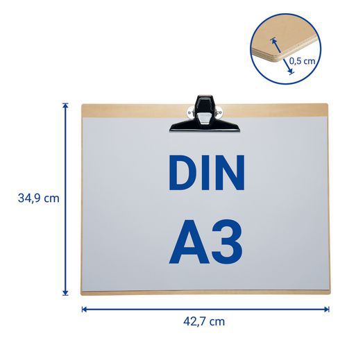 | Nombre del producto | Portapapeles A3 MAULtilia de madera – Apaisado – Maul, Material: Madera laminada encolada, Color: Marrón |