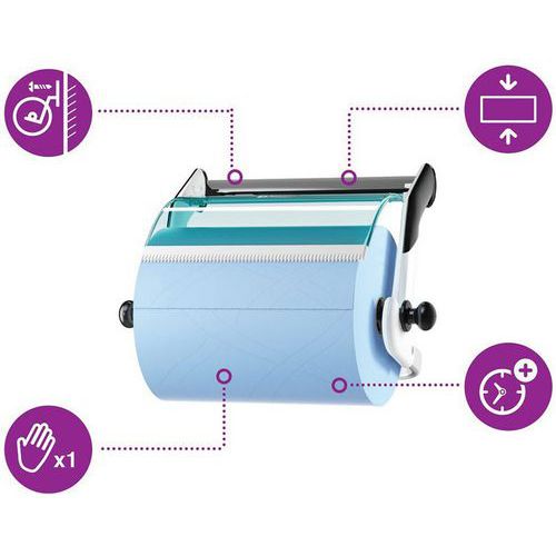 Portarrollos de pared Tork, Color: Azul, Altura: 46.3 cm, Ancho: 64.6 cm, Profundidad: 27.4 cm Portarrollos de pared Tork, Color: Azul, Altura: 46.3 cm, Ancho: 64.6 cm, Profundidad: 27.4 cm