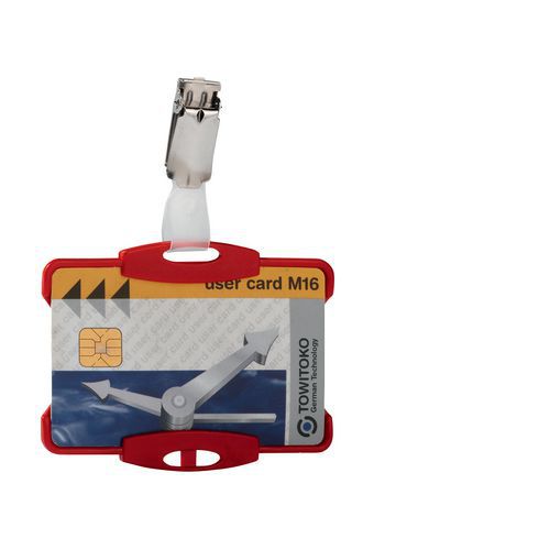 Portatarjetas abierta con el clip, Tipo: 1 tarjeta, Color: Rojo, Tipo de fijación: Con clip, Longitud: 85 mm