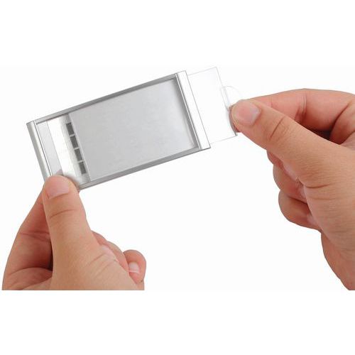 Portatarjetas elegante y cuidado gracias a su acabado en aluminio.