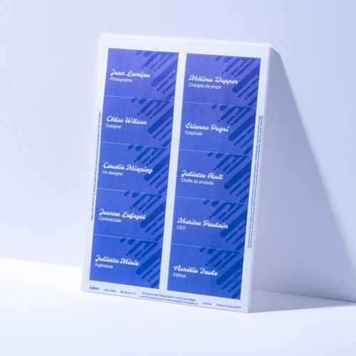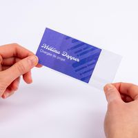 Incluyen insertos personalizables (90 x 54 mm) lo suficientemente grandes como para insertar su logotipo, el nombre y el cargo del visitante y el nombre del evento.