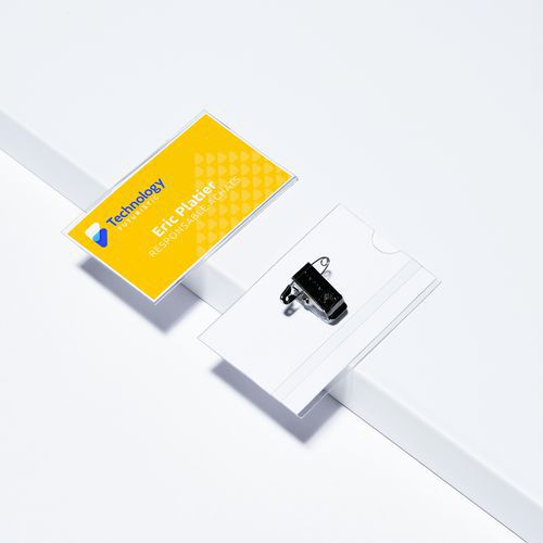 Estos portatarjetas combinados permiten identificar a las personas: personal de la empresa, visitantes externos que tienen que pasar por recepción o participantes en eventos.