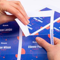 Suficientemente grandes para insertar su logotipo, el nombre y el cargo del visitante, el nombre del evento o el nombre de un departamento.