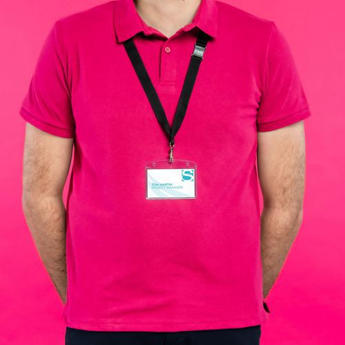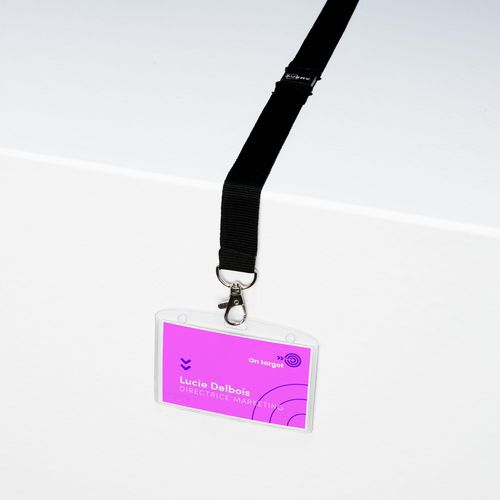 Estos portatarjetas con cinta para el cuello permiten identificar a las personas: personal de la empresa, visitantes externos que tienen que pasar por recepción o participantes en eventos.
