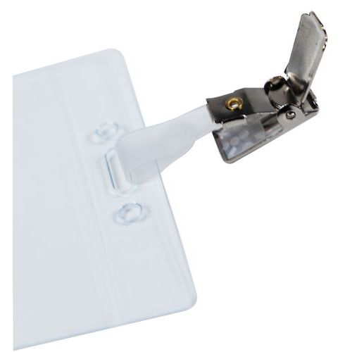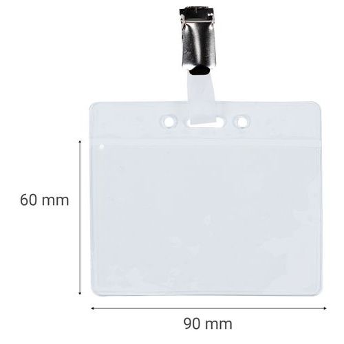| Nombre del producto | Portatarjetas horizontal con clip, Color: Transparente, Tipo de fijaciones: Pinza, Longitudes: 90 mm |