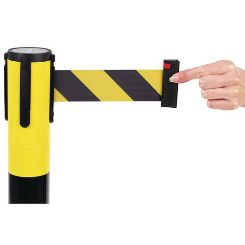 | Nombre del producto | Poste con correa bicolor, base con cabezal giratorio, Entorno de uso: Interior, Correa color: Negro/amarillo |