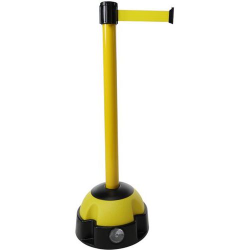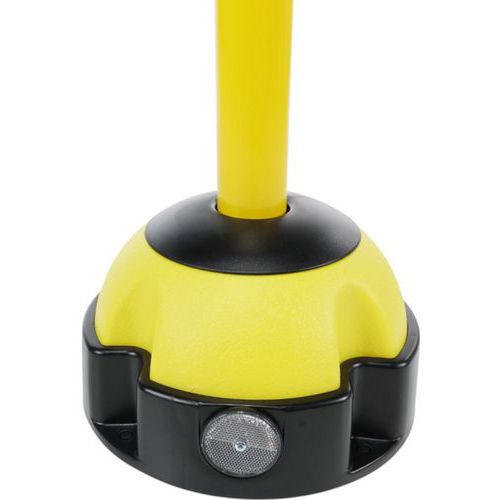 Poste con correas sobre base con baliza lastrable con arena o grava. Balizaje multidireccional gracias a su cabeza con correa. Cuenta con 1 salida de correa y 3 posibles puntos de llegada. Máxima estabilidad: lastrado hasta 13 kg. Base muy resistente con 4 puntos de fijación. Fabricado en la UE Garantía al cliente : 3 años