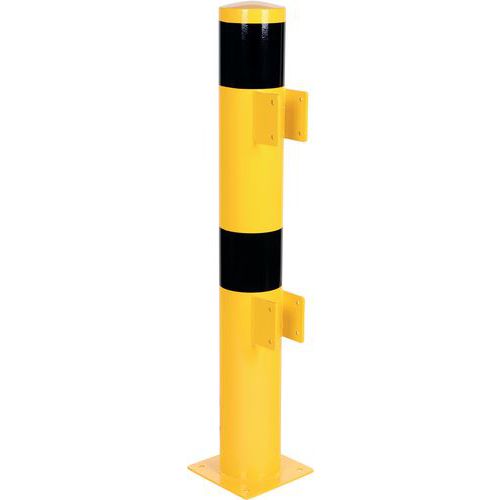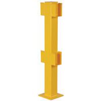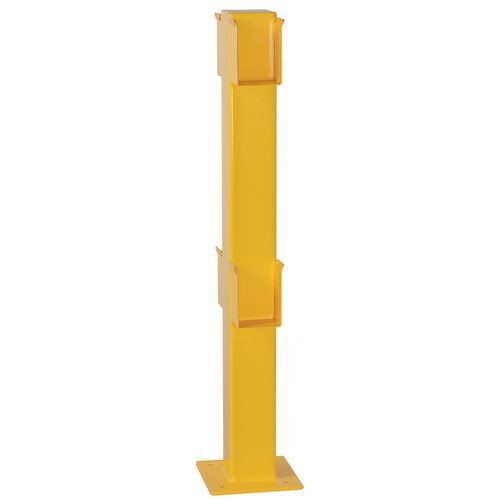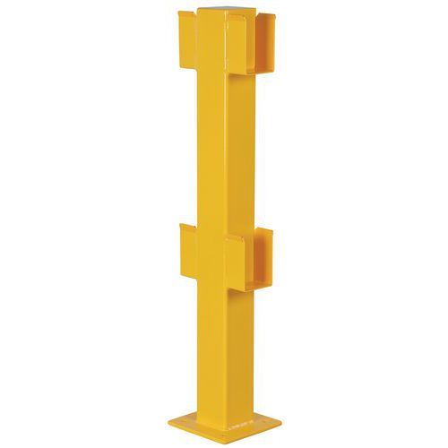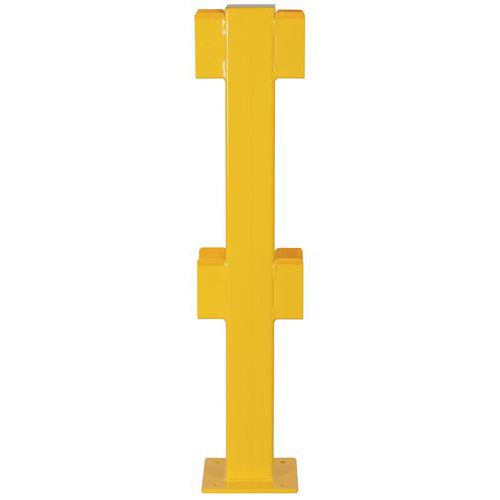 Poste de acero para barrera de seguridad, totalmente adaptable a sus instalaciones. Color amarillo para una buena visibilidad. Estabilidad garantizada gracias a su anclaje al suelo con pletina. Fabricado de acero galvanizado para uso en interiores. Certificado TÜV. Instalación fácil.