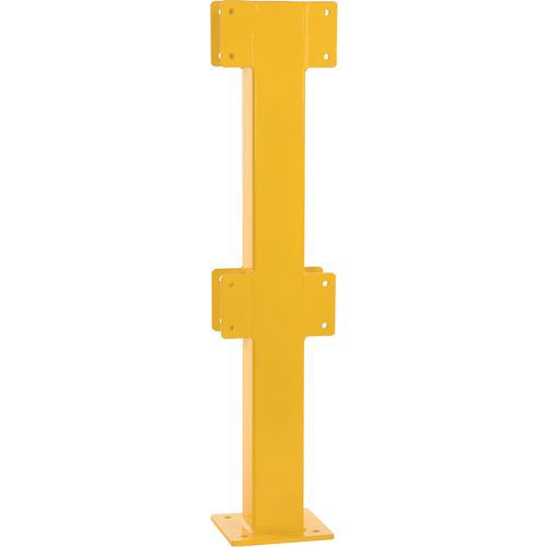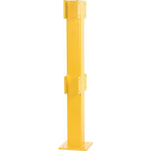 Poste de acero para barrera de seguridad, totalmente adaptable a sus instalaciones. Color amarillo para una buena visibilidad. Estabilidad garantizada gracias a su anclaje al suelo con pletina. Fabricado de acero galvanizado para uso en interiores. Certificado TÜV. Instalación fácil.