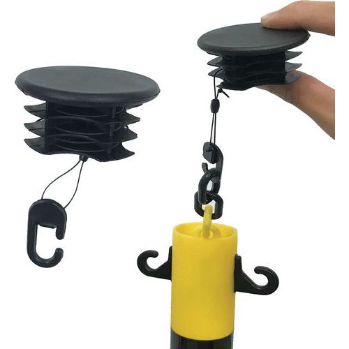 Poste de doble cadena con base – Kit de 6 postes con doble cadena sobre base – Manutan Expert Kit de postes con doble cadena listo para usar, ideal para un balizamiento eficaz y económico. Producto diseñado para uso profesional. Garantía al cliente : 10 años