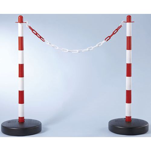 Poste de plástico con puntos de enganche en la parte superior que le permiten colgar cualquier tipo de cadena. Su base se puede lastrar con arena fácilmente.