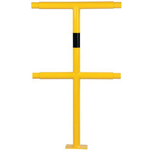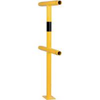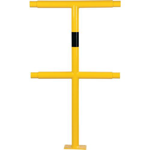 Poste para barrera de protección modular Estabilidad garantizada gracias a su fijación mediante pletina Posibilidad de uso en exteriores gracias a la galvanización. Buena visibilidad gracias al color amarillo de seguridad de tráfico con banda negra. Instalación fácil. Los componentes individuales del sistema se fijan sin tornillos.