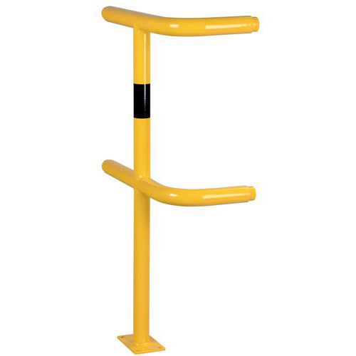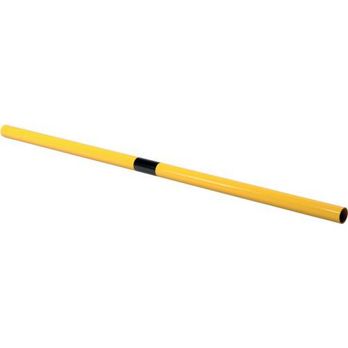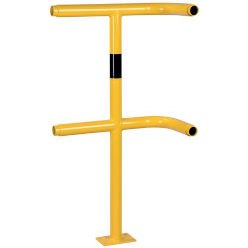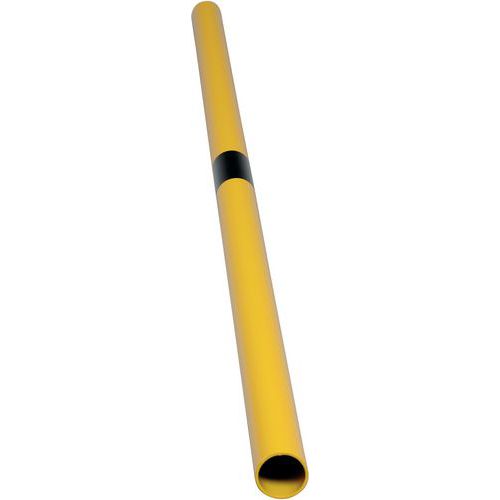 Poste para barrera de protección modular Estabilidad garantizada gracias a su fijación mediante pletina Posibilidad de uso en exteriores gracias a la galvanización. Buena visibilidad gracias al color amarillo de seguridad de tráfico con banda negra. Instalación fácil. Los componentes individuales del sistema se fijan sin tornillos.