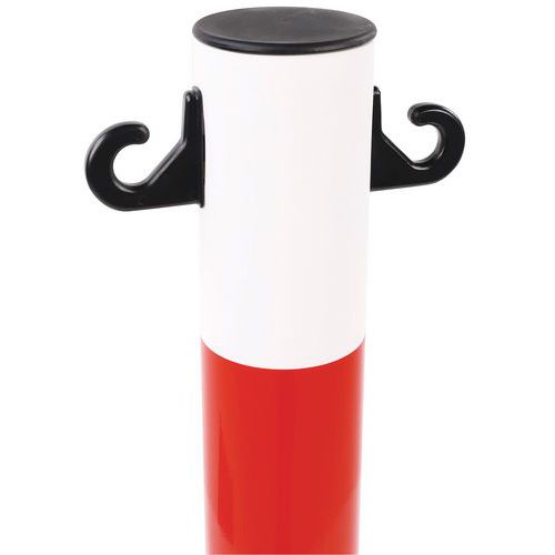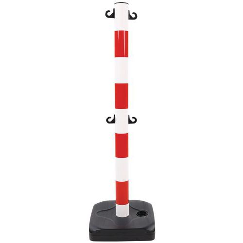 Poste para cadenas muy resistente provisto de 4 ganchos en 2 niveles para enganchar las cadenas. Muy útil para señalar una prohibición temporal. Provisto de una base cuadrada muy estable.