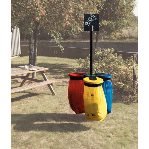 | Nombre del producto | Poste y base para 3 soportes de bolsas, Material: Metal, Color: Gris, Altura: 90 cm, Modelo: 3 flujos |