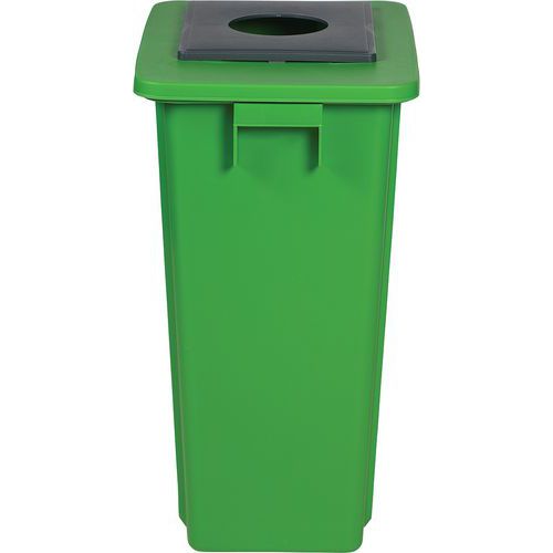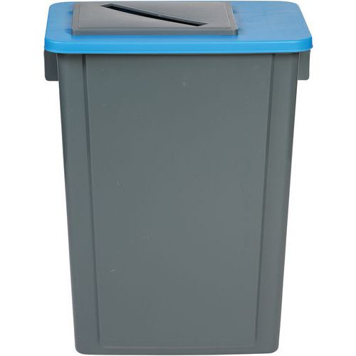 Colector rectangular que permite una utilización en espacios estrechos. Las asas facilitan la manipulación. Práctico cubo de basura adecuado para su uso en interiores. Las tapas de colores indican en qué contenedor debe tirarse cada tipo de residuo.
