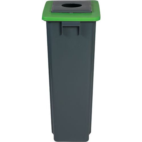 Colector rectangular que permite una utilización en espacios estrechos. Las asas facilitan la manipulación. Práctico cubo de basura adecuado para su uso en interiores. Las tapas de colores indican en qué contenedor debe tirarse cada tipo de residuo.