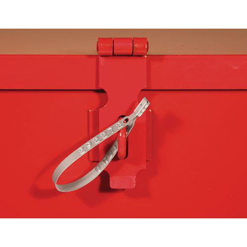 | Nombre del producto | Precinto tipo fleje, Color: Gris, Longitud total: 195 mm, Ancho útil: 160 mm, Paso anchura: 10 mm |