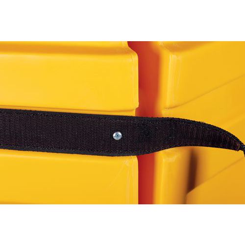 Protección para pilares o postes compuestos de 2 semicarcasas, adaptables a todas las estructuras. Color amarillo muy visible para evitar colisiones. Montaje e instalación rápidos sin herramientas ni tornillos. Uso flexible: exterior e interior, temporal o permanente. Correas de velcro para un montaje fácil.
