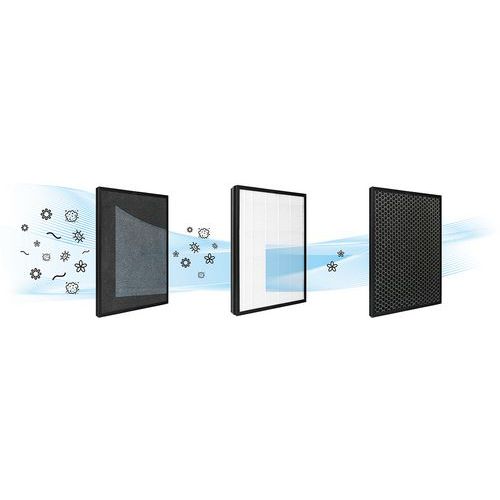 - Elimina hasta un 99,5 % de las partículas (olores, humo, bacterias, alérgenos y polvo).