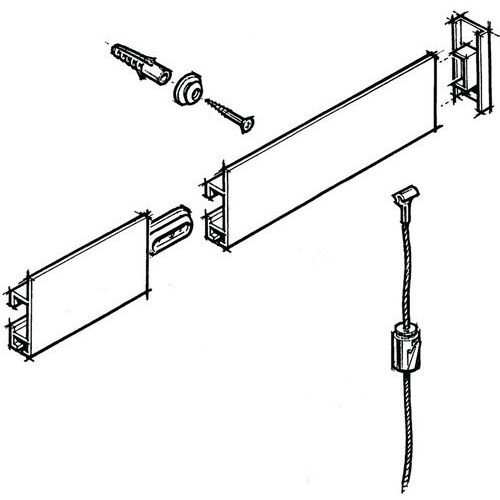 El cliprail de conexión al techo incluye : 2 x cliprail de 1,5 metros. 2 x sets de clips. 2 x sets de tornillos y clavijas. 2 x ocultadores blancos.