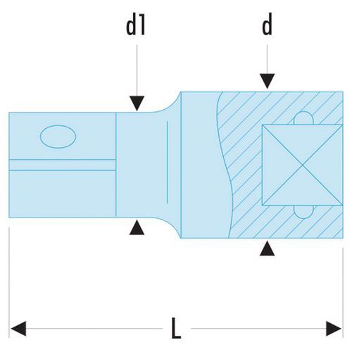 | Datos técnicos | d [mm]: 23, d1 [mm]: 16,5, L [mm]: 75, cuadrado []: 1/2, [g]: 130, |