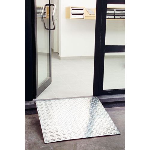 | Nombre del producto | Rampa de acceso, Carga: 200 kg, Anchura total: 800 mm, Longitud total: 800 mm, Con reborde: no |