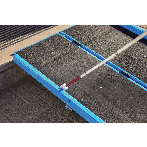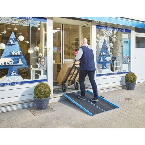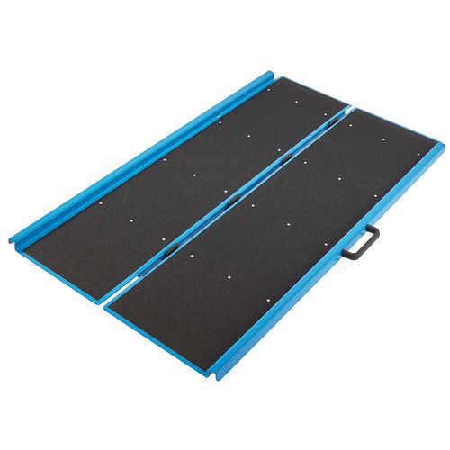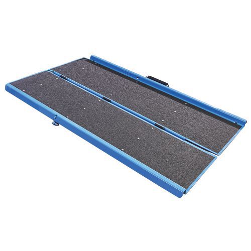 Rampa de acceso para carros, sillas de ruedas, etc. La rampa cuenta con un diseño plegable en dos partes para un almacenamiento práctico. Con revestimiento antideslizante.