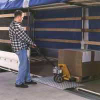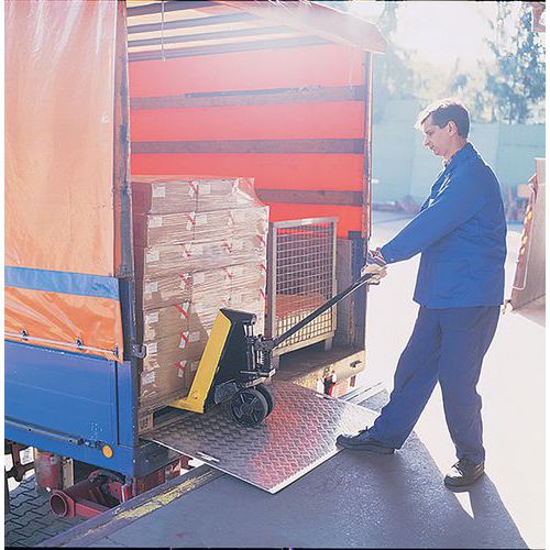 Para cargar y descargar los vehículos con transpaletas manuales, contenedores móviles, carretillas de...