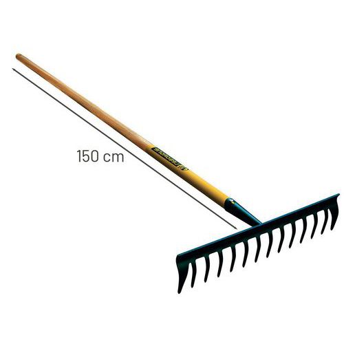 | Nombre del producto | Rastrillo Duopro 14 púas curvas, mango de madera, Ancho: 40 mm, Mango longitud: 150 cm, Nº de dientes: 14 |