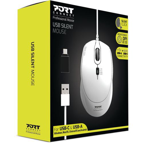| Nombre del producto | Ratón con cable Pro silencioso blanco, Tipo de sensor: Óptico |
