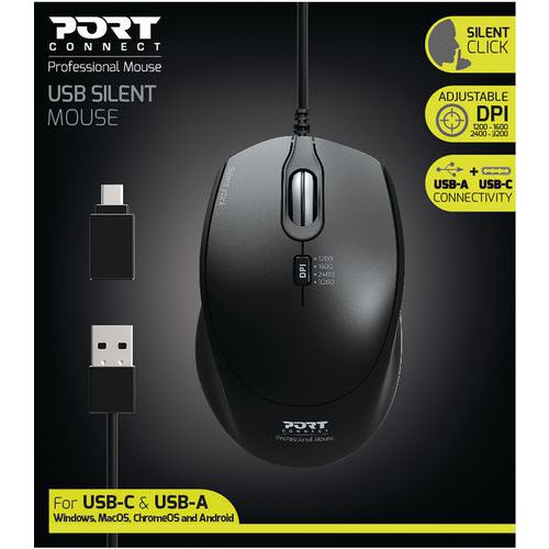 | Nombre del producto | Ratón con cable Pro silencioso negro, Tipo de sensor: Óptico |