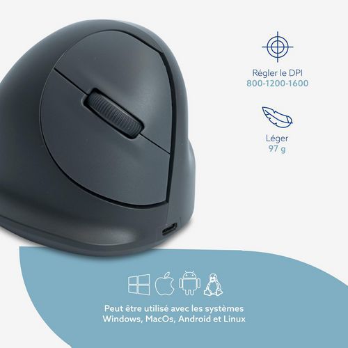 Ratón ergonómico R-Go HE Basic para diestros con Bluetooth y un indicador de pausa integrado.