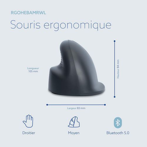 Ratón ergonómico Bluetooth R-Go HE Basic, para diestros, mediano, R-Go Tools