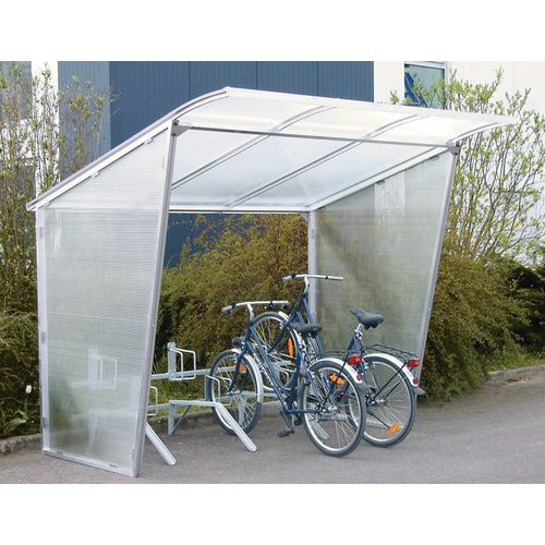 - Refugio para bicicletas con pared de policarbonato semiopaca.