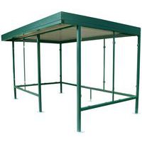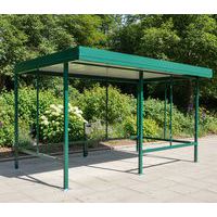 Refugio para fumadores robusto y de techo plano.