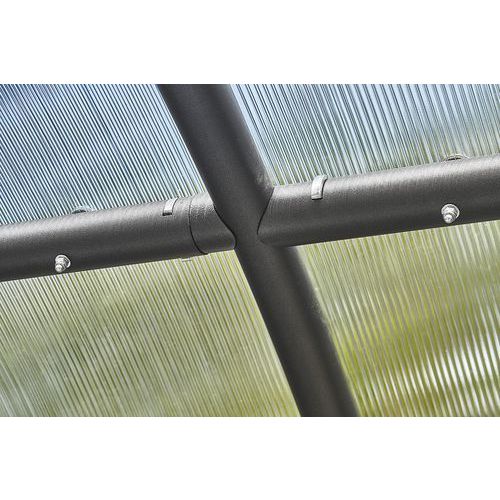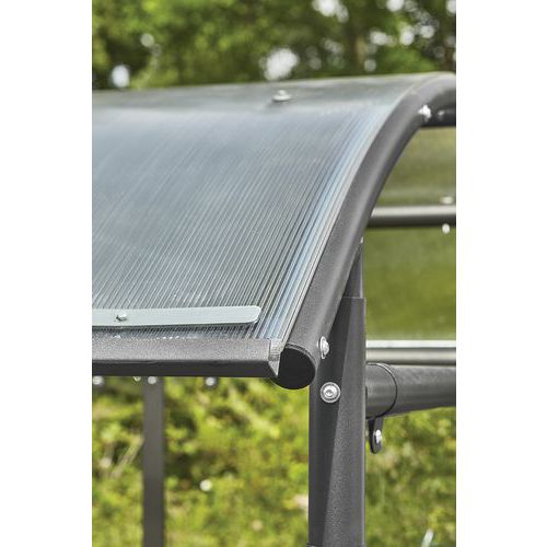 Refugio para vehículos de 2 ruedas en forma de cúpula. Diseño elegante con líneas depuradas. Montaje de la estructura rápido y sencillo. Refugio ideal para bicicletas y motocicletas. Estructura de tubo de 60 mm de diámetro y 2 mm de grosor. Refugio con patas de altura regulable para una mejor nivelación.