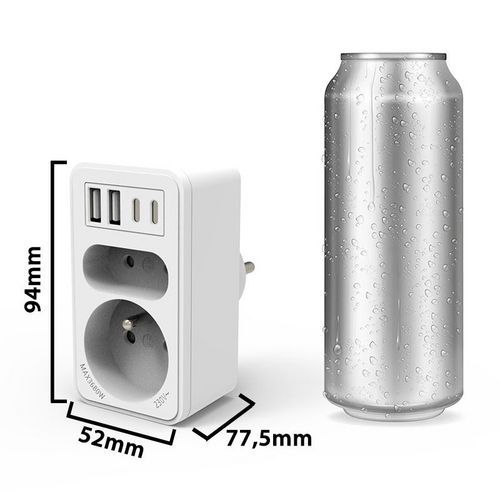 Cómoda para cubrir las necesidades de conexión eléctrica doméstica. Equipada con una protección para niños.