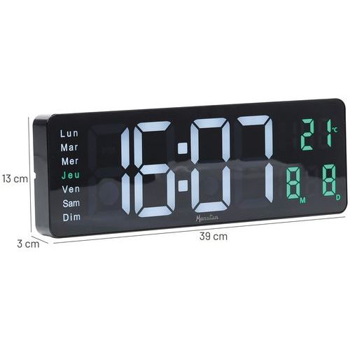 | Nombre del producto | Reloj de pared LED rectangular, Visualización del reloj: Numérico, Forma: Rectángulo, Color: Negro |