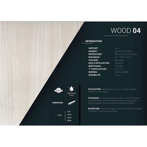 | Nombre del producto | Revestimiento adhesivo WOOD 04, Tipo de película para vidrio: Película decorativa, Color: Marrón/beis |