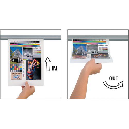 - Riel de exposición Grip-a-Strip de Jalema para documentos impresos de todos los formatos.