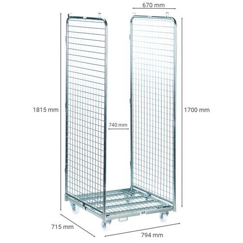 | Nombre del producto | Roll-contenedor 2 lados, Carga: 400 kg, Altura total: 1815 mm, Longitud total: 794 mm, N.º de lados: 2 |