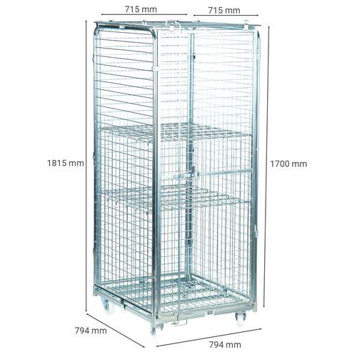 | Nombre del producto | Roll-contenedor de seguridad, Carga: 400 kg, Altura total: 1815 mm, Longitud total: 794 mm |