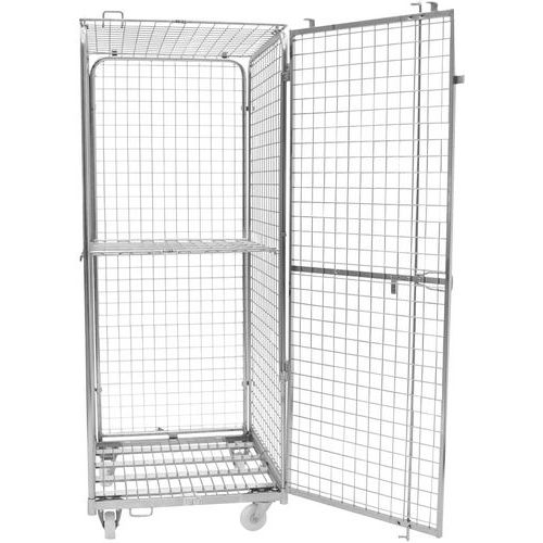 Roll-contenedor con puerta bloqueable con candado. Malla muy tupida para evitar cualquier pérdida de objetos. Sistema de bloqueo de la puerta en cada extremo. Carro de transporte de rejilla cerrado en todos sus costados. Carga (kg) : 600 kg Montaje : Para montar Garantía al cliente : 10 años