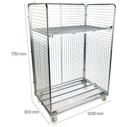 | Nombre del producto | Roll-contenedor maxi de 3 adrales, Carga: 600 kg, Altura total: 1751 mm, Longitud total: 1208 mm |