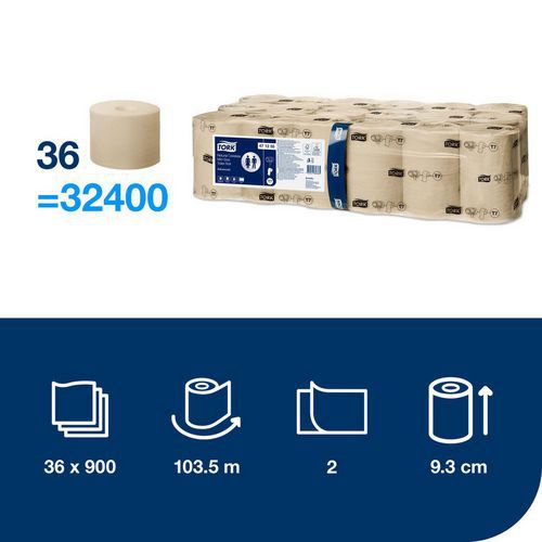 | Nombre del producto | Rollo de papel higiénico, Nº de pliegues: 2, Longitud Rodillo: 103.5 mm, Color: Beis, N.º de hojas/rollo: 900 |