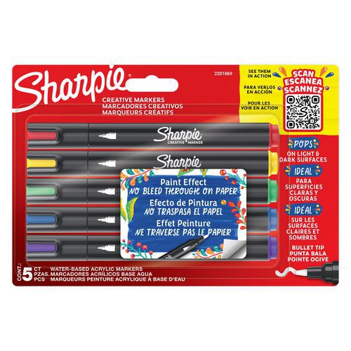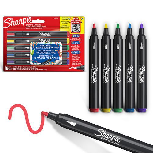 Rotuladores de pintura creativos Sharpie. Punta ojival. Ancho de trazo: 2,5 mm. Paquete de 5 uds.