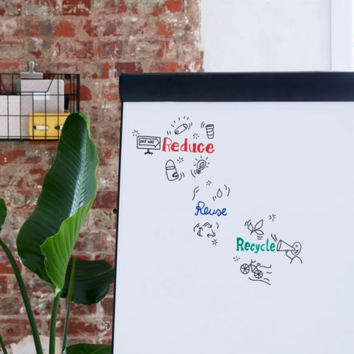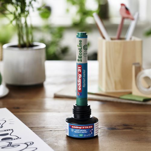 Rotulador con, al menos, el 90 % del plástico utilizado procedente de material reciclado. Punta ojival ideal para trabajar en papel para pizarras. Posibilidad de acoplar el capuchón en la punta del rotulador para evitar que se pierda. Gracias a la tecnología Cap-Off, puede permanecer sin tapa varias semanas sin que se seque. Práctico clip: impide que el rotulador ruede y permite sujetarlo a una prenda u objeto. Especialmente diseñado para escribir y marcar sobre el papel para pizarras